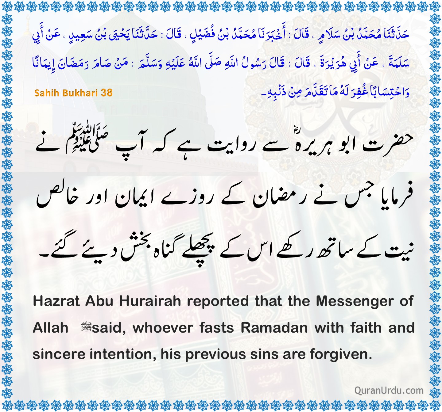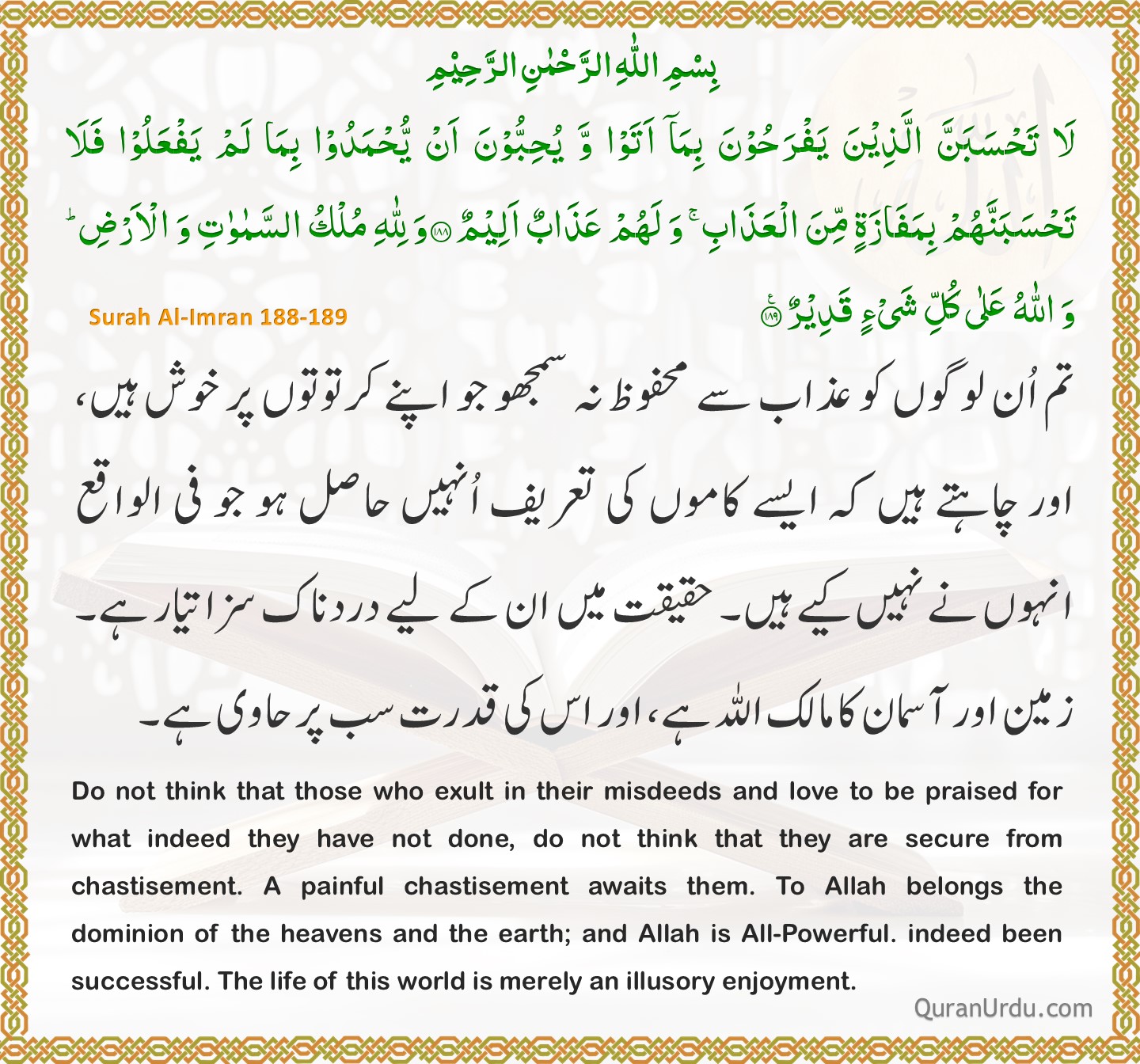 Today’s Quran and Hadith Surah Al-Imran – Ayah 188-189 Surah Al-Imran – Ayah 188-189 Sahih Bukhari – 38 Sahih Bukhari – 38