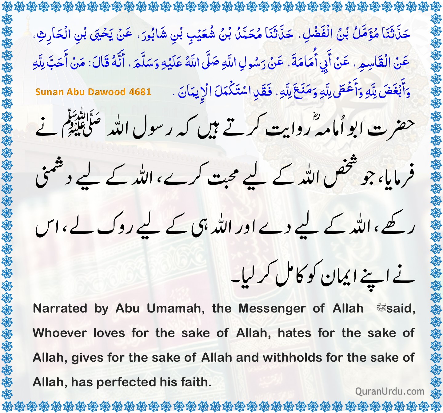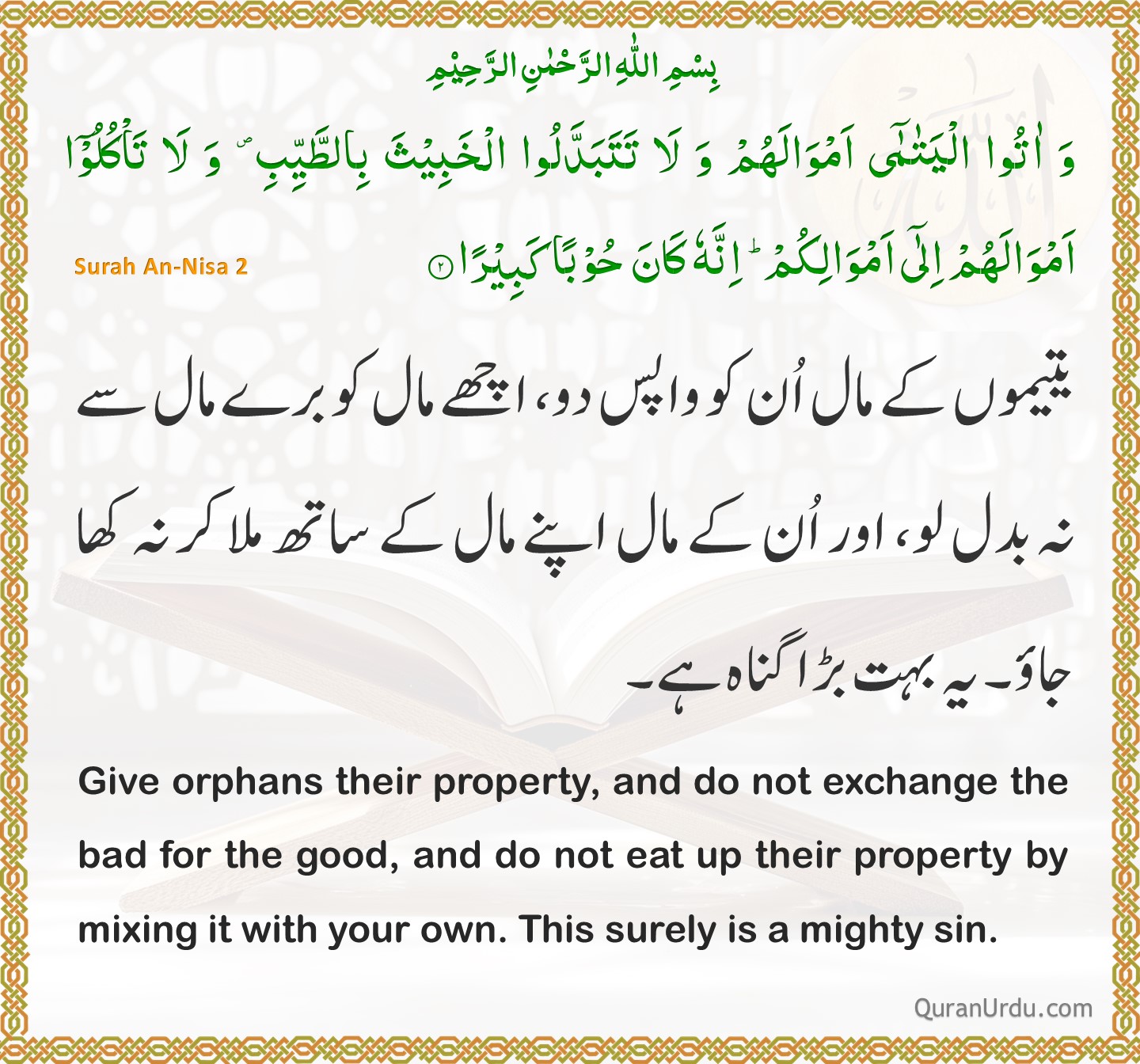 Today’s Quran and Hadith Surah An-Nisa – Ayah 2 Surah An-Nisa – Ayah 2 Sunan Abu Dawood – 4681 Sunan Abu Dawood – 4681