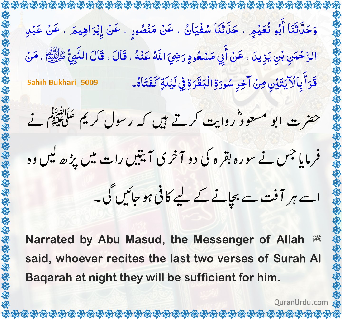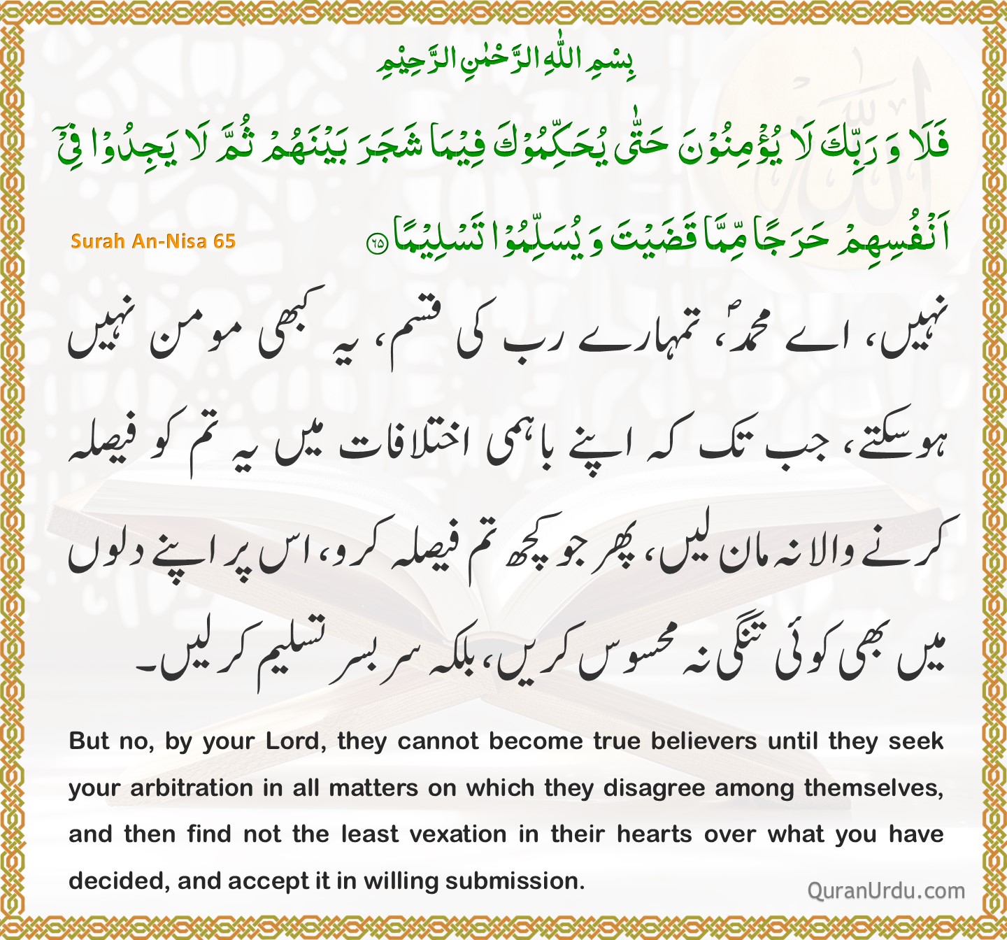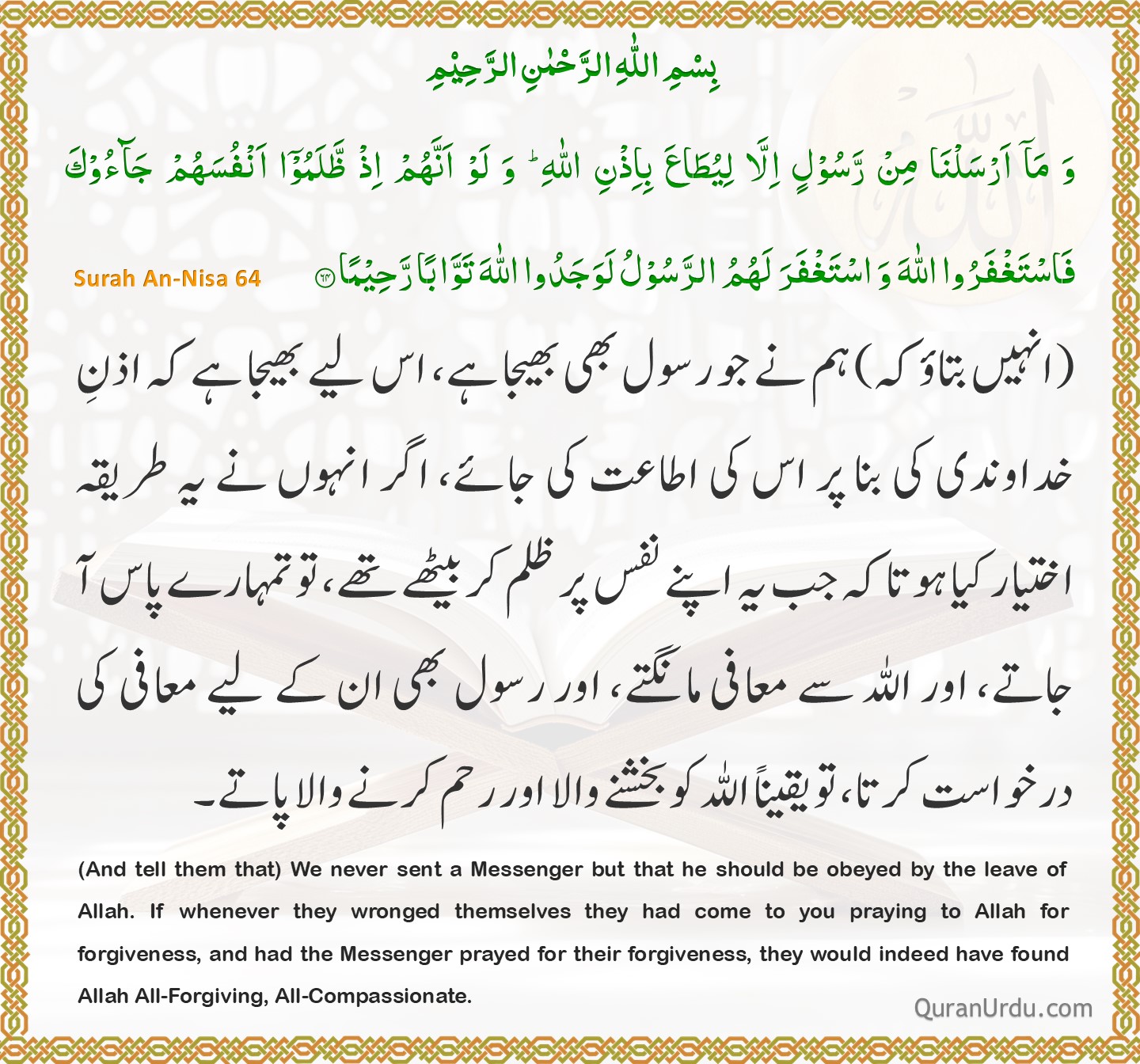 Today’s Quran and Hadith Surah An-Nisa – Ayah 64 Surah An-Nisa – Ayah 64 Sahih Bukhari – 5009 Sahih Bukhari – 5009