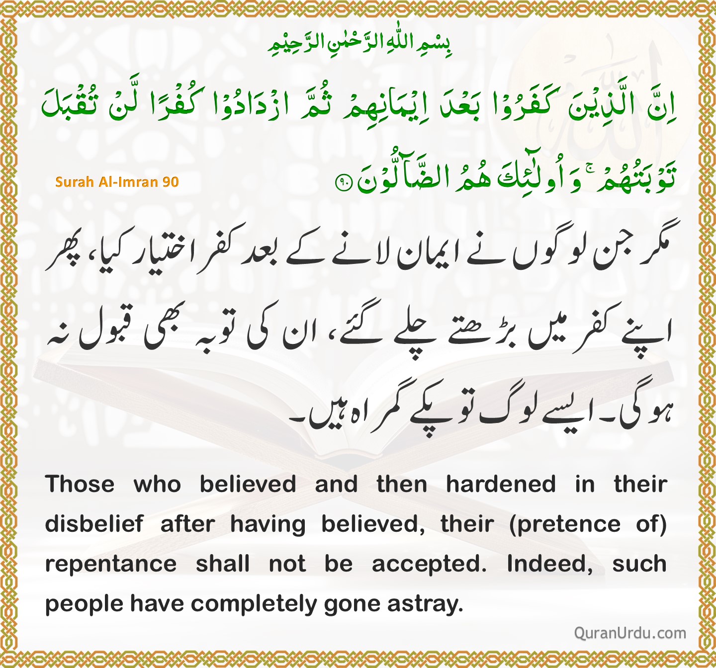 Today’s Quran and Hadith Surah Al-Imran – Ayah 90 Surah Al-Imran – Ayah 90 Sunan Ibn Majah – 2144 Sunan Ibn Majah – 2144