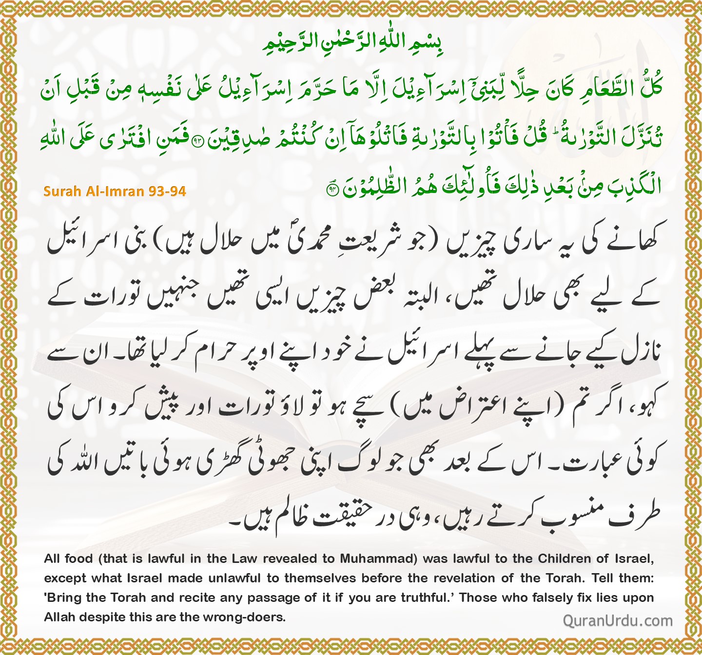 Today’s Quran and Hadith Surah Al-Imran – Ayah 93-94 Surah Al-Imran – Ayah 93-94 Sahih Bukhari – 1232 Sahih Bukhari – 1232