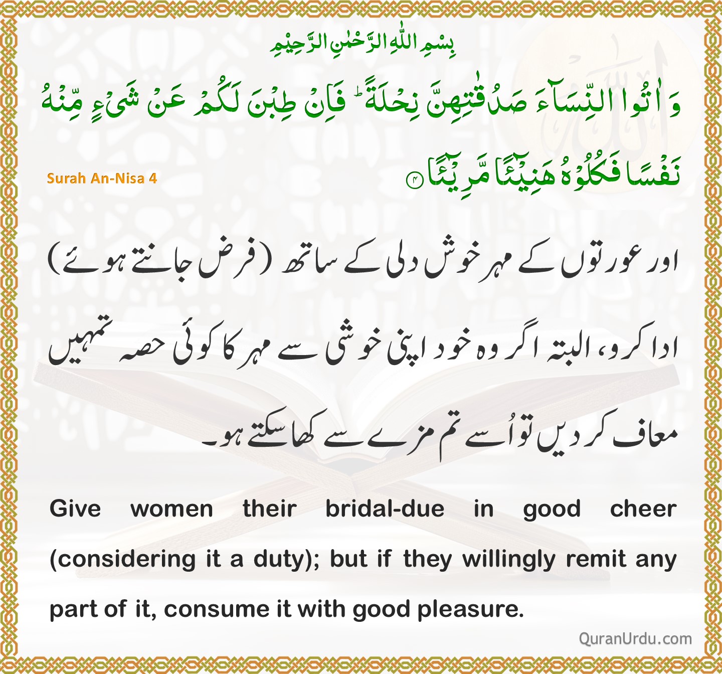Today’s Quran and Hadith Surah An-Nisa – Ayah 4 Surah An-Nisa – Ayah 4 Sahih Bukhari – 1894 Sahih Bukhari – 1894