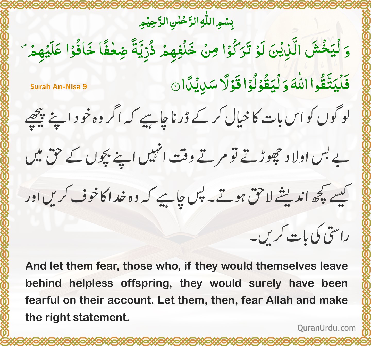 Today’s Quran and Hadith Surah An-Nisa – Ayah 9 Surah An-Nisa – Ayah 9 Sahih Bukhari – 1894 Sahih Bukhari – 1894