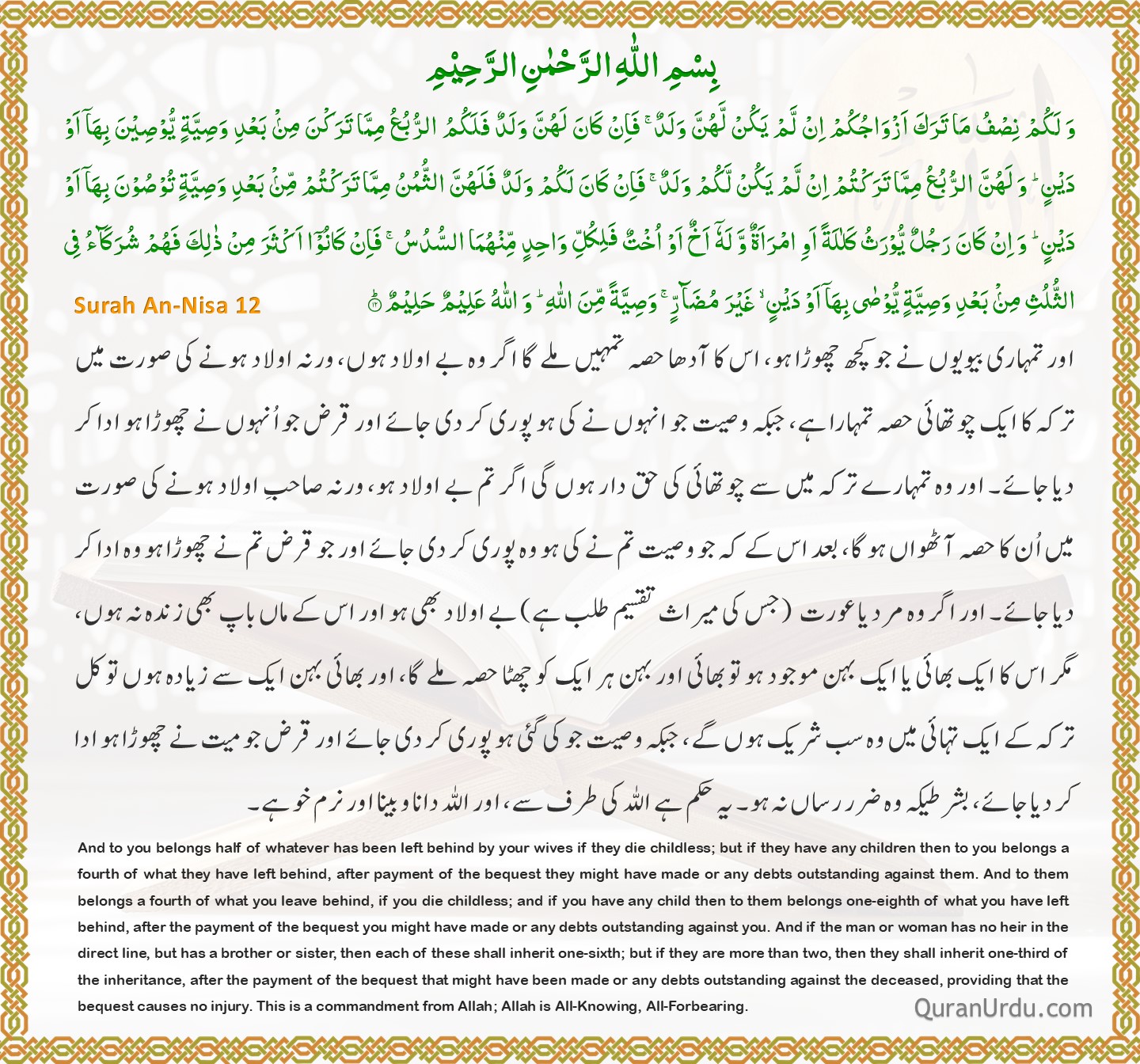 Today’s Quran and Hadith Surah An-Nisa – Ayah 12 Surah An-Nisa – Ayah 12 Sunan Abu Dawood – 2407 Sunan Abu Dawood – 2407