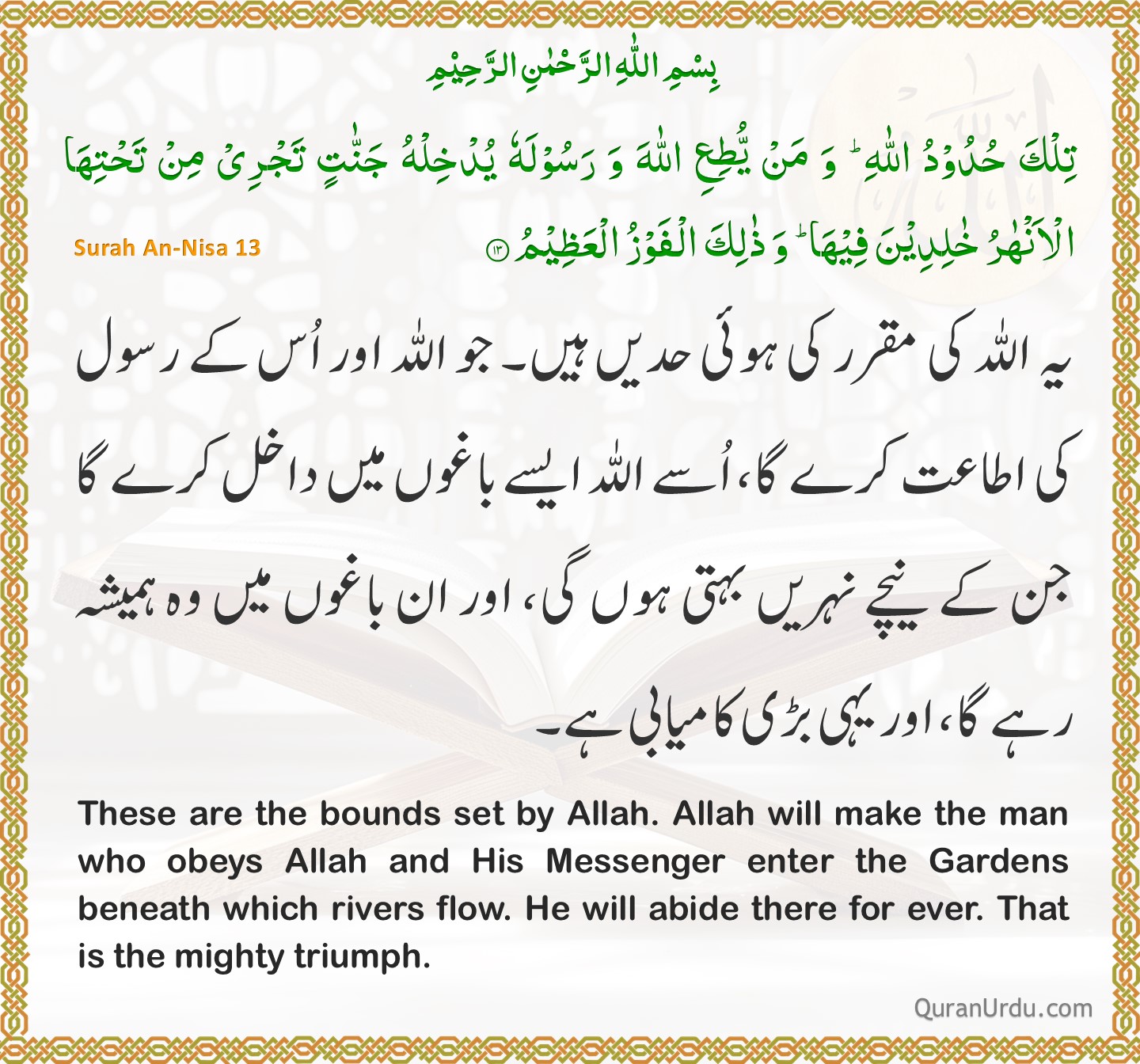 Today’s Quran and Hadith Surah An-Nisa – Ayah 13 Surah An-Nisa – Ayah 13 Sahih Bukhari – 1782 Sahih Bukhari – 1782