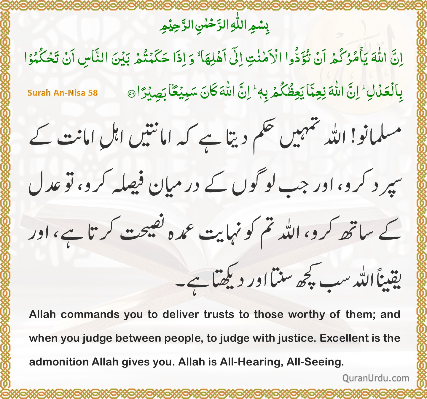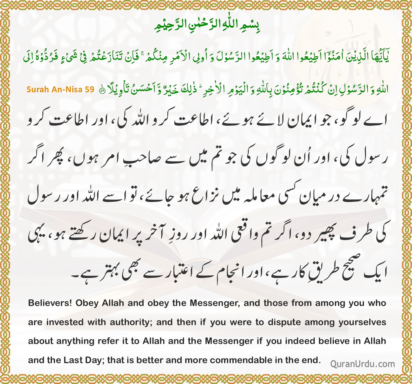 Today’s Quran and Hadith Surah An-Nisa – Ayah 59 Surah An-Nisa – Ayah 59 Sahih Muslim – 1521 Sahih Muslim – 1521