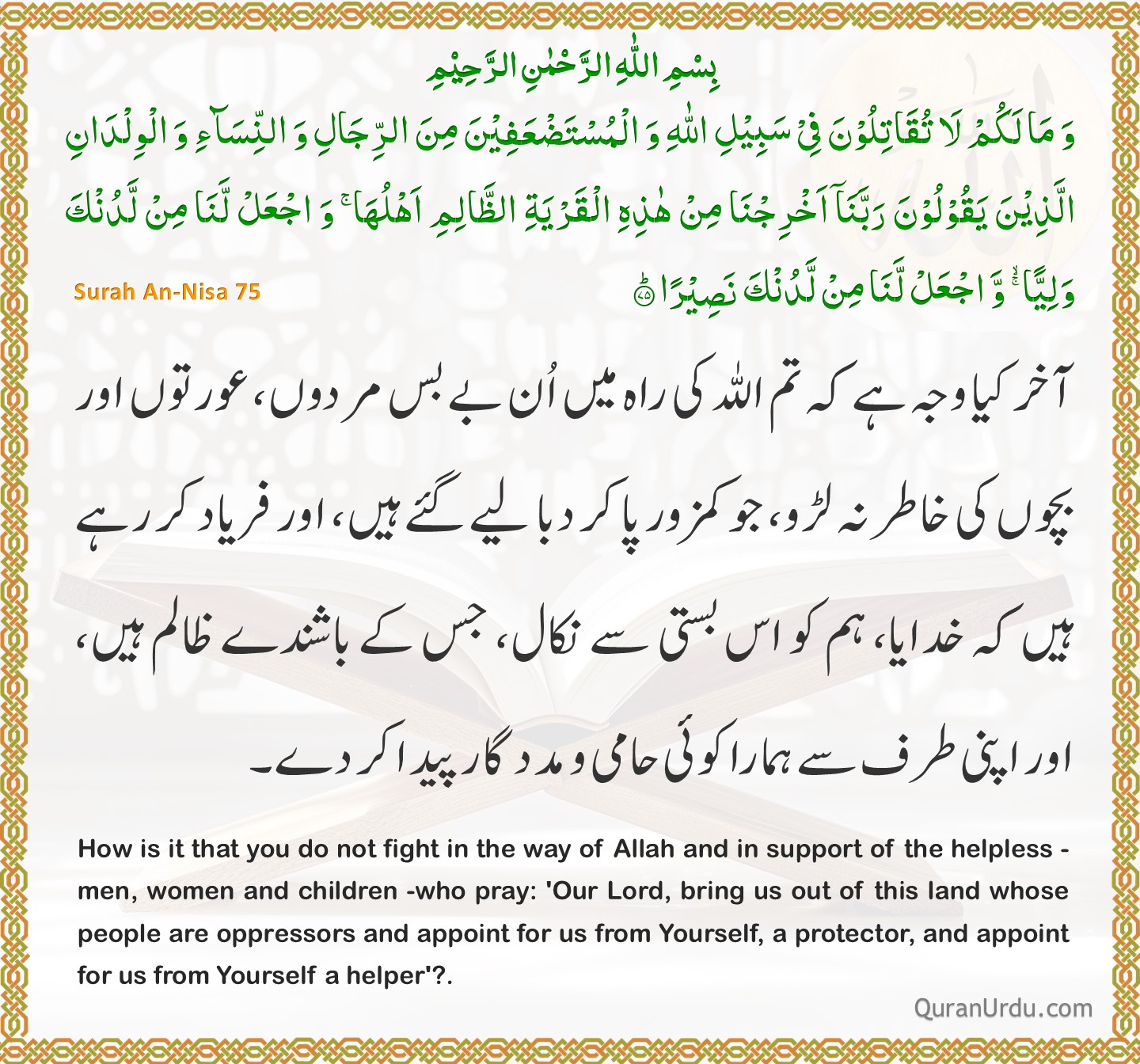 Today’s Quran and Hadith Surah An-Nisa – Ayah 75 Surah An-Nisa – Ayah 75 Jamia Tirmizi – 2002 Jamia Tirmizi – 2002