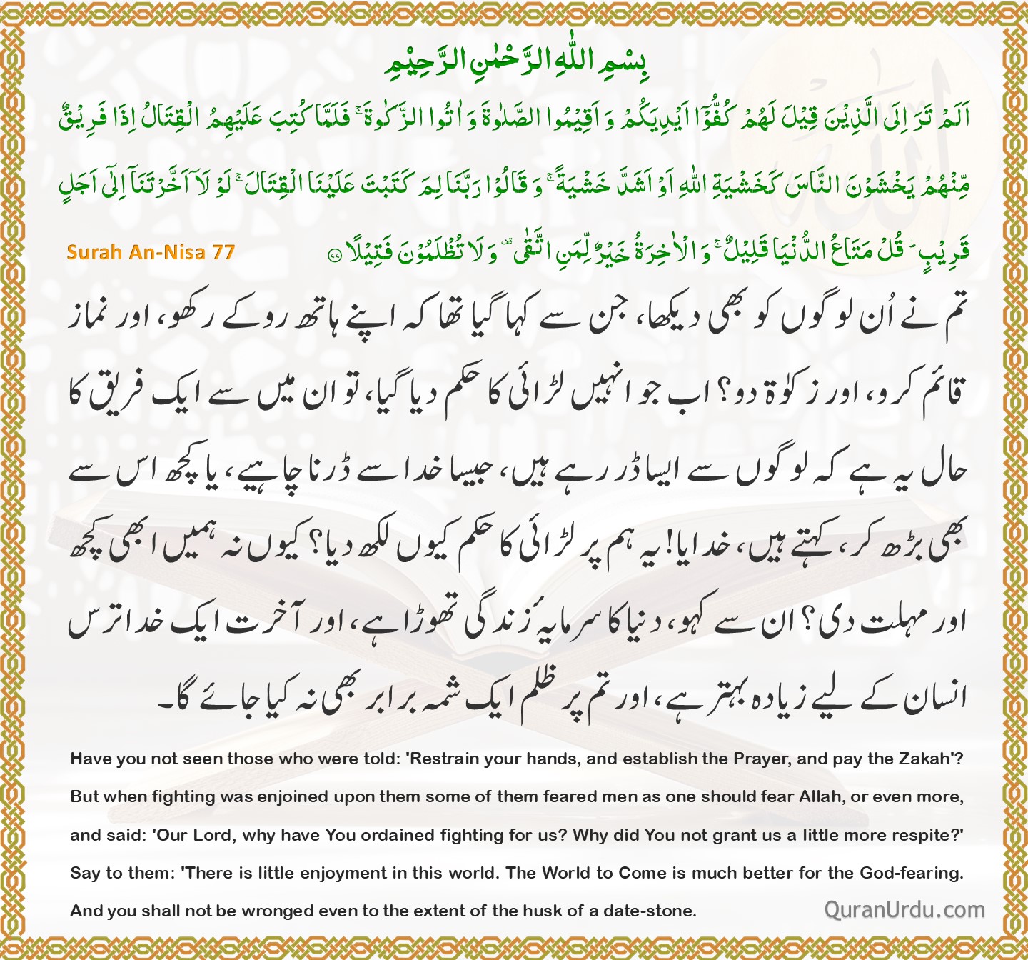 Today’s Quran and Hadith Surah An-Nisa – Ayah 77 Surah An-Nisa – Ayah 77 Sahih Bukhari – 2397 Sahih Bukhari – 2397