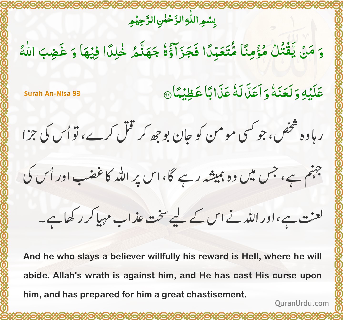 Today’s Quran and Hadith Surah An-Nisa – Ayah 92 Surah An-Nisa – Ayah 92 Sahih Bukhari – 54 Sahih Bukhari – 54
