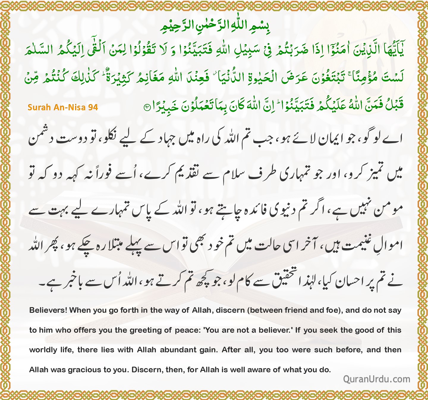 Today’s Quran and Hadith Surah An-Nisa – Ayah 93 Surah An-Nisa – Ayah 93 Sahih Bukhari – 54 Sahih Bukhari – 54