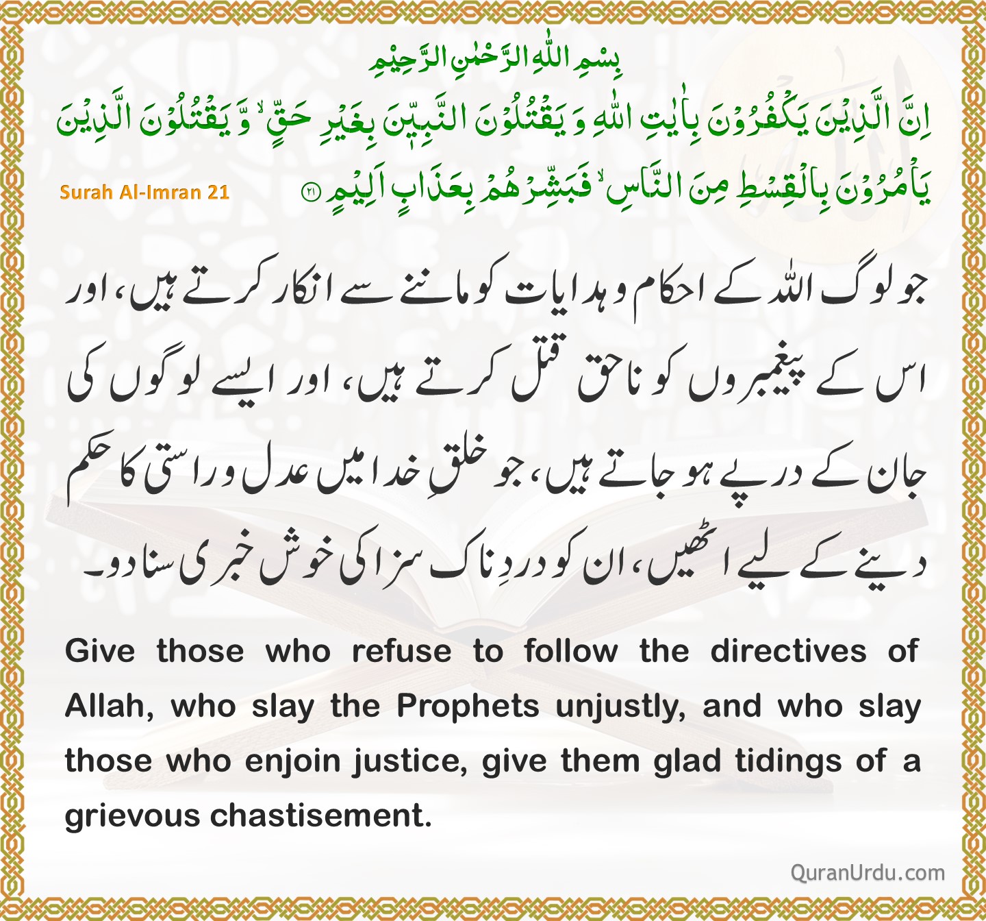 Today’s Quran and Hadith Surah Al-Imran – Ayah 21 Surah Al-Imran – Ayah 21 Sahih Muslim – 1862 Sahih Muslim – 1862